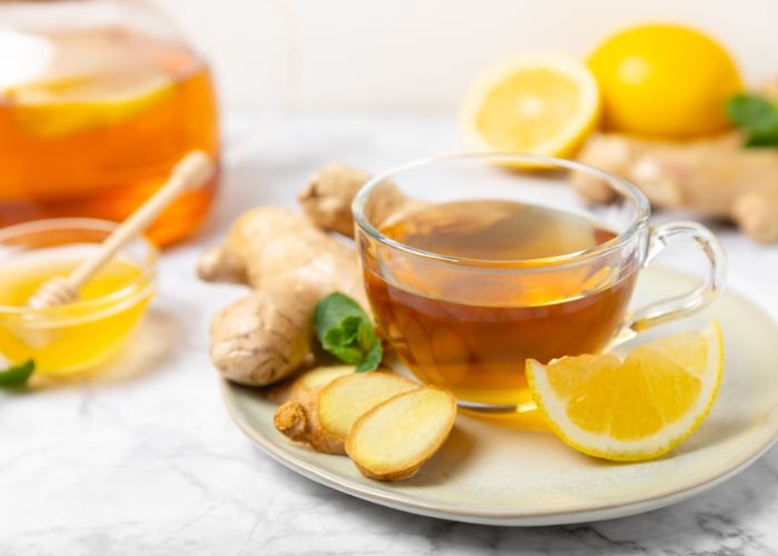 Khó ngủ nên uống gì? Gừng có tính ấm, khi uống vào buổi tối sẽ giúp làm dịu hệ tiêu hóa, hữu ích nếu bạn bị đầy bụng hoặc khó chịu sau bữa ăn tối. Bên cạnh đó, vị ấm nhẹ của trà gừng còn giúp cơ thể thư giãn, tạo cảm giác dễ chịu trước khi nghỉ ngơi.