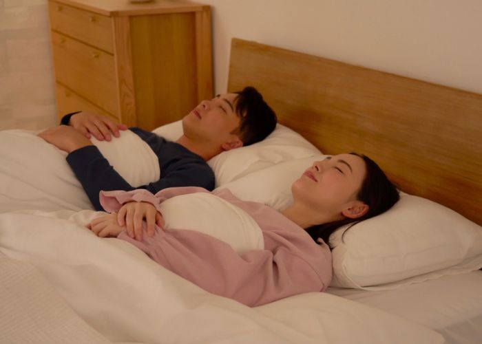 Tư thế ngủ cũng ảnh hưởng trực tiếp đến đường thở. Nằm ngửa dễ khiến cơ vùng vòm miệng, lưỡi và cổ họng giãn ra, từ đó cản trở luồng khí. Bạn nên chuyển sang nằm nghiêng để giữ đường thở thông thoáng và hạn chế việc mở miệng khi ngủ.