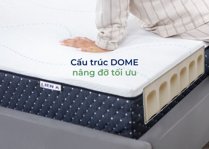 Bên cạnh đó, nệm cao su thiên nhiên cũng là lựa chọn đáng cân nhắc, tuy nhiên còn phụ thuộc vào thiết kế cấu trúc nệm. Các mẫu nệm cao su truyền thống với lỗ vuông nâng đỡ còn kém. Thay vào đó, bạn có thể tham khảo nệm L’ADOME của LIÊN Á với cấu trúc mái vòm (DOME) độc quyền giúp phân tán áp lực đồng đều, nâng đỡ tối ưu từng vùng cơ thể và giảm thiểu tình trạng lõm nệm.